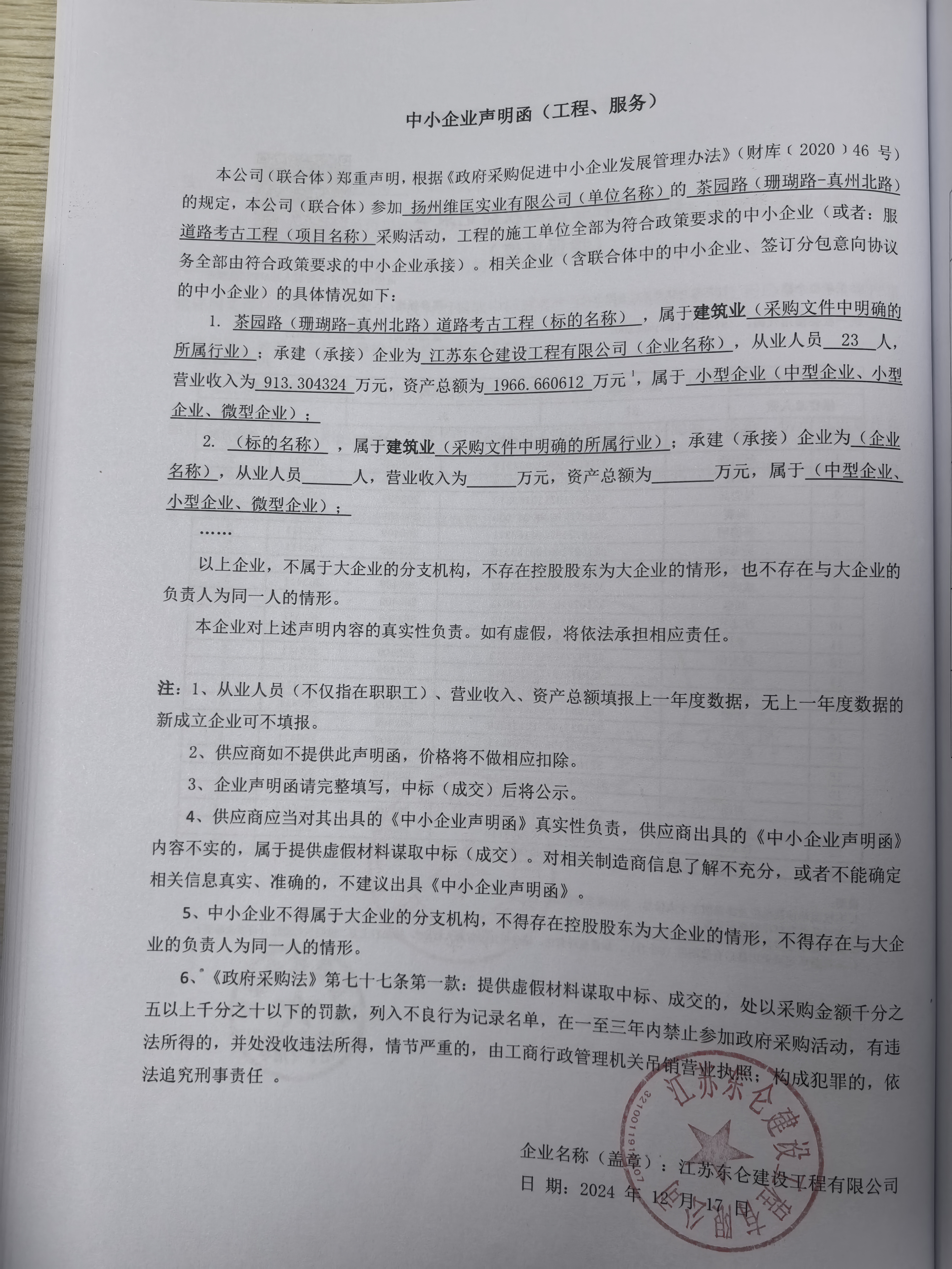 茶園路(珊瑚路-真州北路)道路考古工程成交公告